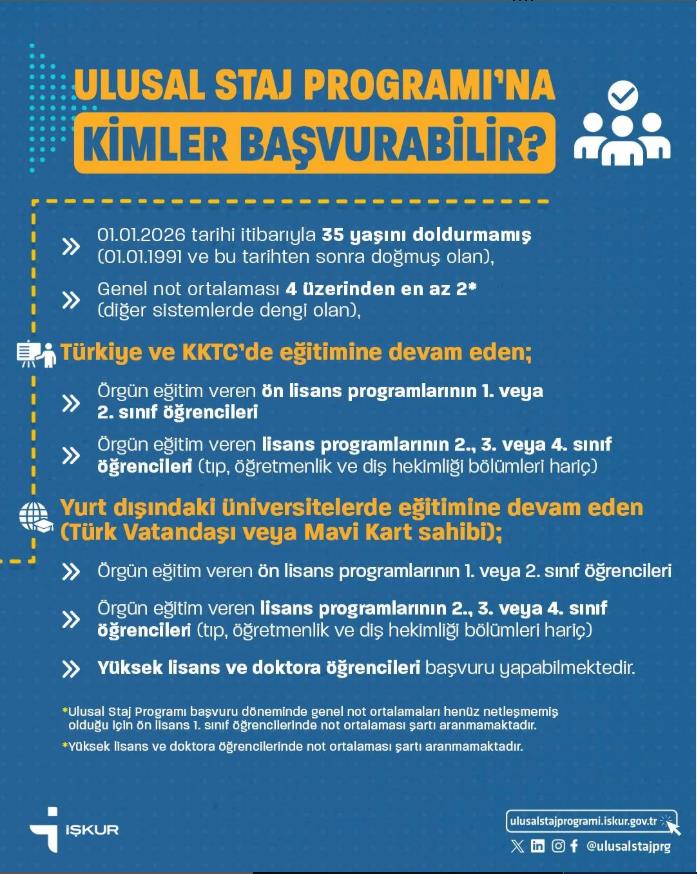 🔗 Applications & Details: ulusalstajprogrami.iskur.gov.tr