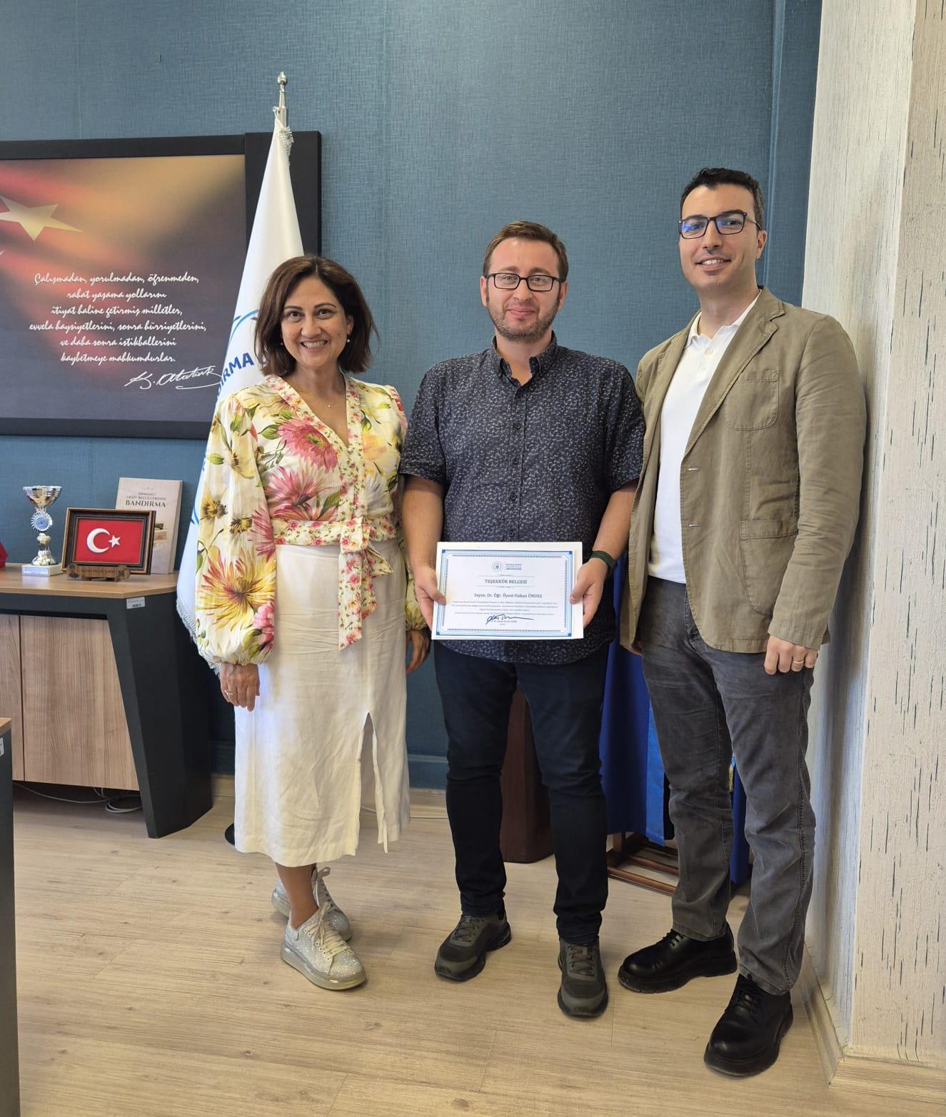 Faculty of Economics and Administrative Sciences Vice Dean Dr. Hakan ÖNDES handed over his duties to Dr. Oğuzhan YELKESEN. Prof. Dr. Serap PALAZ ÇAKIR, Vice Deans, and the Faculty Secretary attended the meeting held at the Faculty of Economics and Administrative Sciences Dean's Office. At the ceremony, Faculty of Economics and Administrative Sciences Dean Prof. Dr. Serap PALAZ ÇAKIR thanked Dr. Hakan ÖNDES for his work and contributions and wished him success in his endeavors.