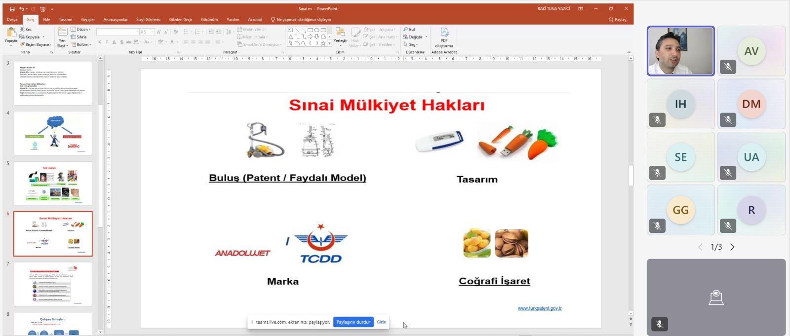 The informational conference titled “Protection of Intellectual Property Rights within the Scope of Industrial Property,” organized in collaboration between the Department of Business Administration’s Scientific and Social Activities Committee and the Technology Transfer Office, was successfully held. The event, which took place online via the Microsoft Teams platform, drew significant interest from students, faculty members, research assistants, and other participants interested in the topic.