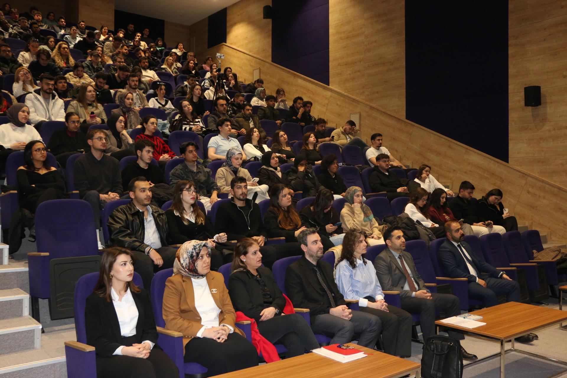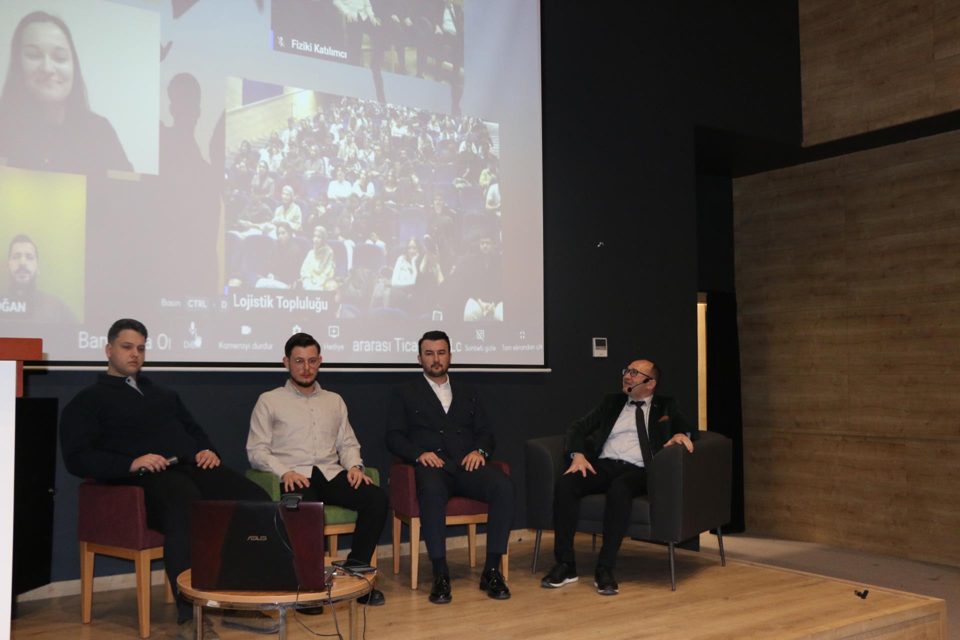 Etkinlik kapsamında, Uluslararası Ticaret ve Lojistik bölümü mezunları ve sektördeki çalışan kişiler; kariyer fırsatları, sektördeki olanaklar ve mesleki gelişim deneyimlerini paylaştılar.