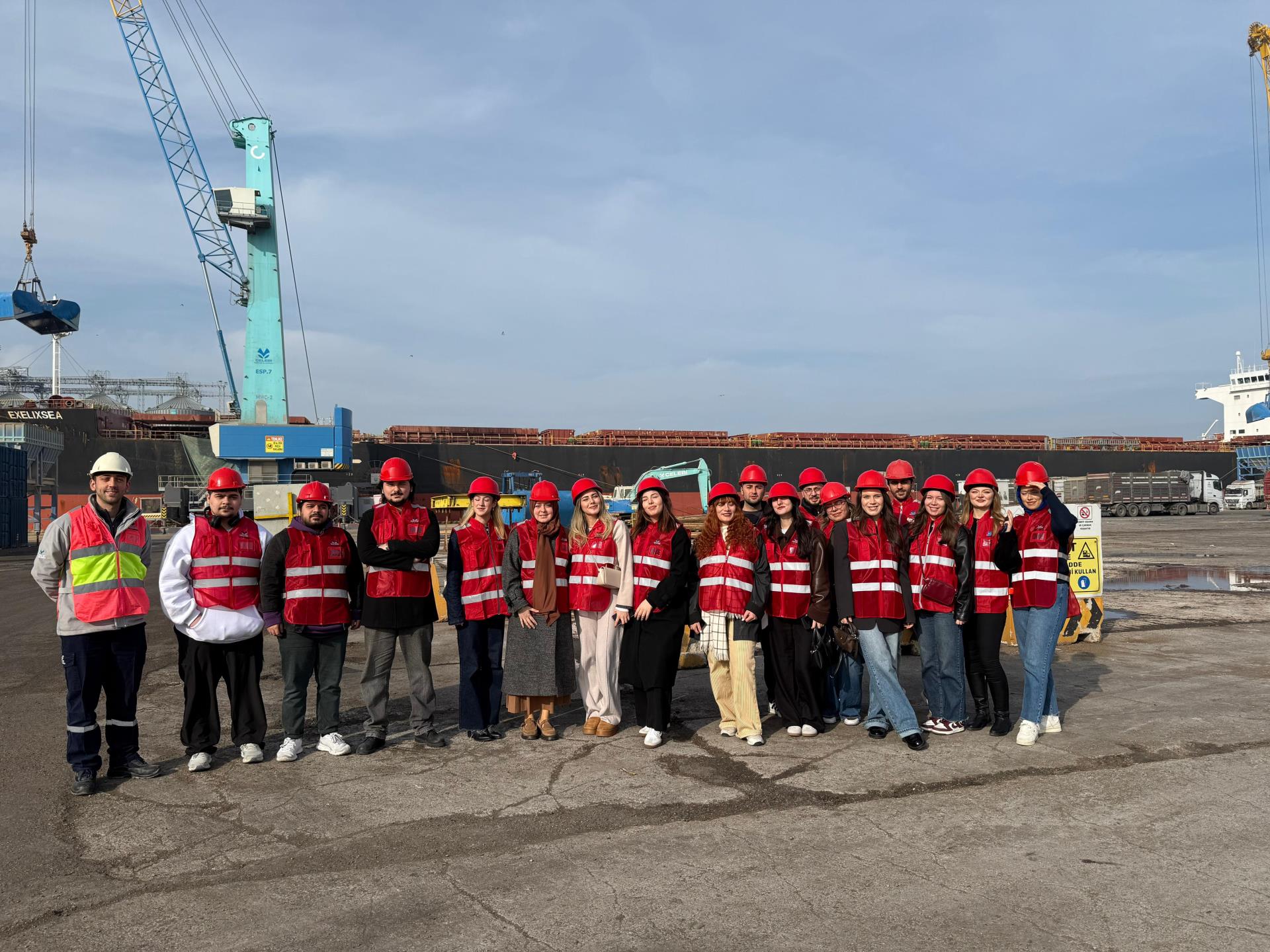 Dr. Öğr. Üyesi Merve Çiloğlu Yörübulut rehberliğinde düzenlenen teknik gezide öğrenciler, liman işletmelerinde iş sağlığı ve güvenliği uygulamalarını yerinde gözlemleme fırsatı buldu. Gezi kapsamında liman sahasında yürütülen operasyonlar, risk faktörleri, alınan önleyici tedbirler ve İSG mevzuatının uygulamadaki karşılığı hakkında öğrencilere bilgilendirme yapıldı.