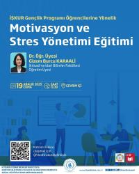 İktisadi ve İdari Bilimler Fakültemiz ile Kariyer Geliştirme Uygulama ve Araştırma Merkezimiz iş birliğinde, İŞKUR Gençlik Programı kapsamında öğrencilere yönelik “Motivasyon ve Stres Yönetimi Eğitimi” düzenlenecektir.