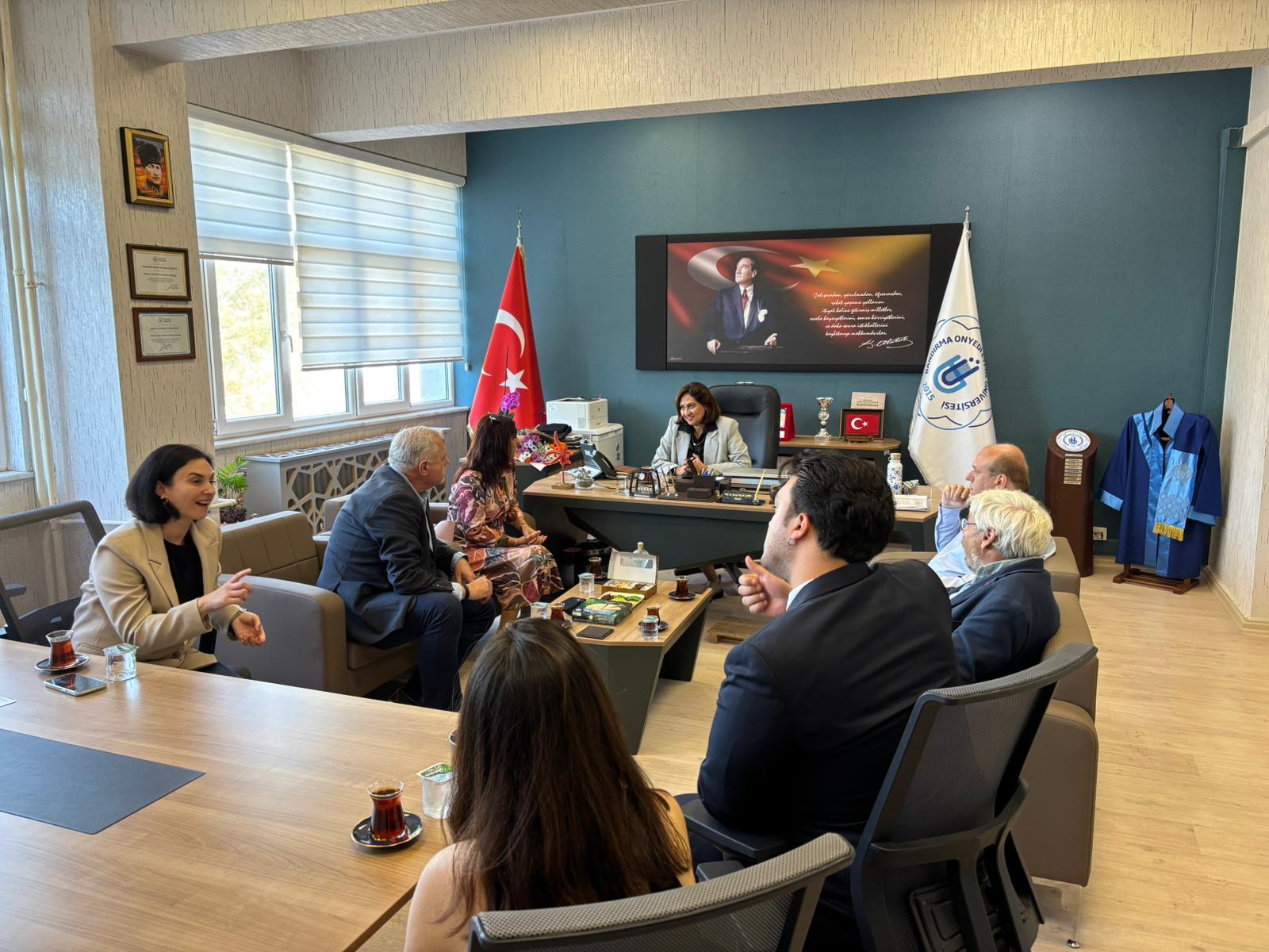 Çekya Pan-European Üniversitesi Ekonomi ve İnsan Kaynakları Bölüm Başkanı Prof. Eduard ENTLER, Dr. Roman KORAN, Dr. Pavel SLADEK, ve Dr. Ivana Mičínová Rektörümüz Prof. Dr. İsmail BOZ ve Dekanımız Prof. Dr. Serap PALAZ’ı ziyaret etti. Ziyaretinde gelecek dönemde Fakültemizin uluslararasılaşma çabalarına katkı sağlayabilmek amacıyla öğrenci ve öğretim üyesi hareketlilikleri yapılması ve ortak araştırma projeleri yürütülmesine ilişkin işbirlikleri görüşülmüştür.