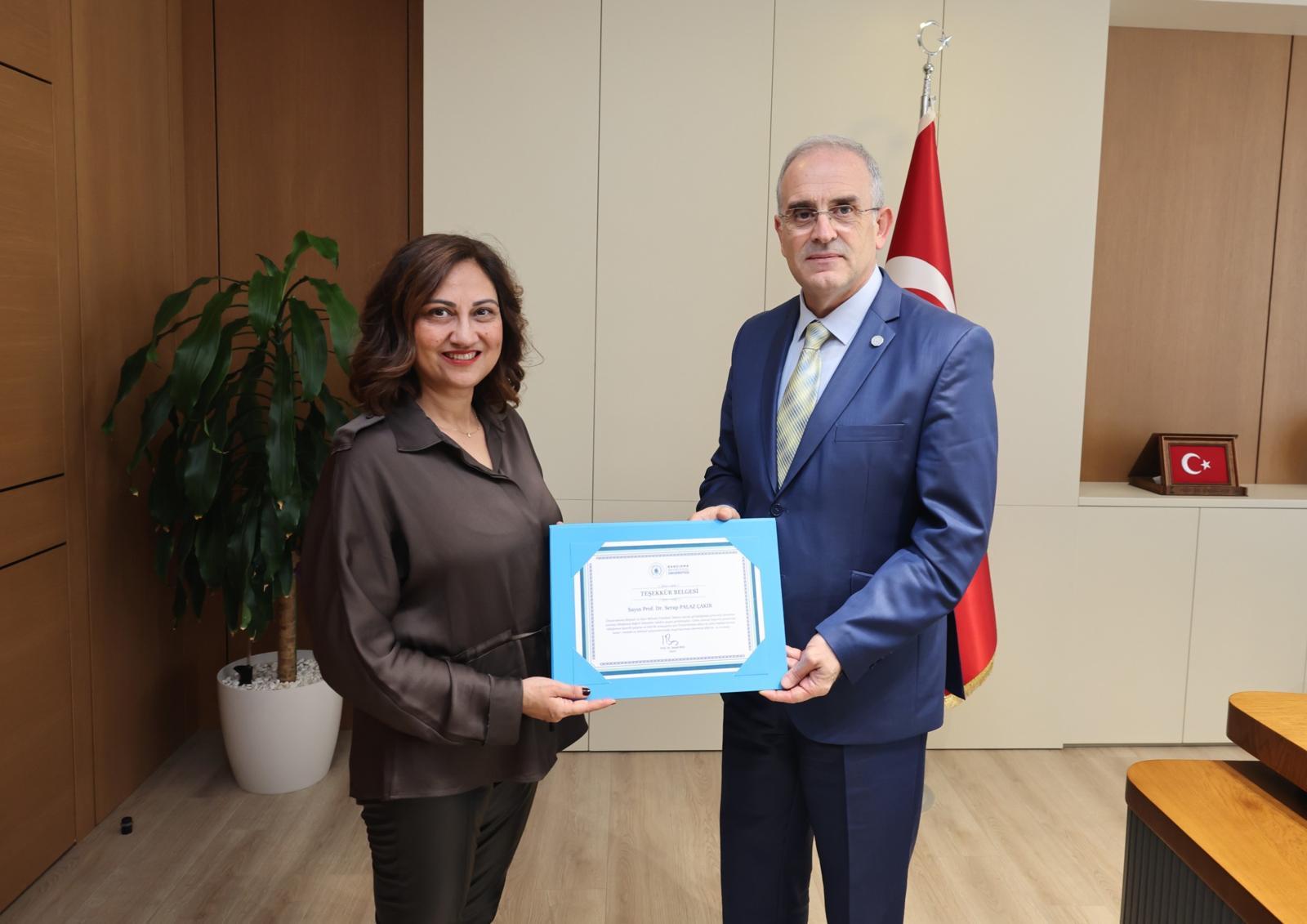 Rektörlük Makamında düzenlenen törene Rektörümüz Prof. Dr. İsmail BOZ, Rektör Yardımcılarımız Prof. Dr. Alpaslan SEREL ve Prof. Dr. Mehmet Emin ERÇAKAR katılım sağladı. Törende Rektörümüz Prof. Dr. İsmail BOZ, Fakültemize sunduğu değerli katkılar dolayısıyla Prof. Dr. Serap PALAZ ÇAKIR’ı tebrik ederek akademik çalışmalarında başarılarının devamını diledi. Yeni Dekanımız Prof. Dr. Fatih AYHAN’ı da yeni görevi dolayısıyla tebrik ederek başarı temennisinde bulundu. Törende ayrıca Rektörümüz Prof. Dr. İsmail BOZ tarafından Prof. Dr. Serap PALAZ ÇAKIR’a "Teşekkür Belgesi" takdim edildi.
