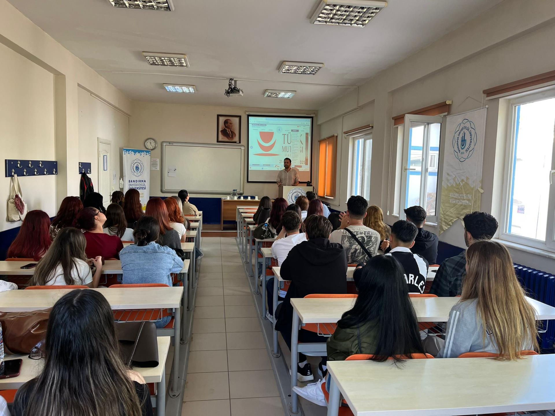 Meslek Yüksekokulumuza yeni kayıt yaptıran Turizm ve Otel İşletmeciliği Programı ile Sağlık Turizmi İşletmeciliği Programı öğrencilerine yönelik 23 Eylül 2025 Salı günü saat 11.15’te “Oryantasyon Programı” düzenlendi. Okulumuz müdür yardımcıları Dr. Öğr. Üyesi Yasin Turna ile Dr. Öğr. Üyesi Semih Sarıipek tarafından sunulan programda öğrencilerimize ders seçimi, ÜBYS kullanımı, akademik danışmanlık, öğrenci görüşme saatleri, dumansız kampüs uygulaması, çift anadal imkanları, kurumsal akreditasyon programı, öğrenci toplulukları, yemekhane hizmetleri ve kütüphane gibi konular hakkında detaylı bilgiler verildi. Program öğrencilerden gelen soruların yanıtlanmasının ardından sona erdi.