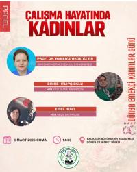 Kadın emeğinin, alın terinin ve üretkenliğinin toplum hayatındaki yerini konuşmak üzere 8 Mart Dünya Emekçi Kadınlar Günü kapsamında bir araya geldiğimiz etkinlikte, Bölüm başkanımız Prof. Dr. Aybeniz AKDENİZ AR, konuşmacı olarak katılım gösterecektir. 6 Mart Cuma saat 14.00'te BBB Gönen Ek Hizmet Binası Konferans Salonunundaki (OnOn Kafe Üstü) etkinliğe ilgi duyan herkesi bekliyoruz.