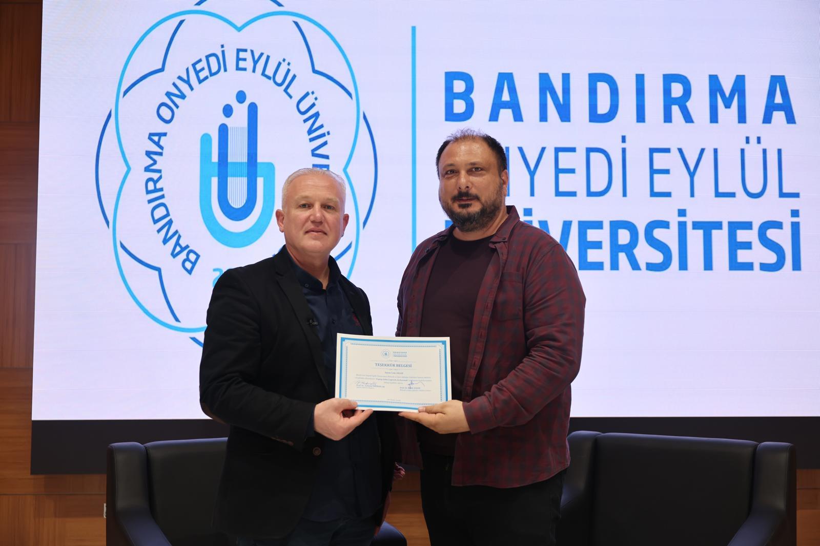 Söyleşi, aynı zamanda Güney Marmara Teknoloji ve İnovasyon Derneği İşletme Bölümü Koordinatörü olan Dr. Öğr. Üyesi Muhammed Mustafa Tuncer Çalışkan’ın, konuşmacımız Sayın Cem Aslan'a teşekkür belgesini takdim etmesiyle sona erdi.