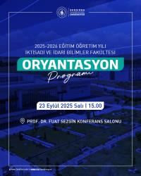 Bunlardan ilki İktisadi ve İdari Bilimler Fakültesi Dekanlığı tarafından 23 Eylül 2025 Salı günü Saat: 15:00’de Fuat SEZGİN Toplantı Salonunda bütün bölümlerin akademik personeli ve yeni eğitime başlayacak öğrencilerinin katılımı ile yapılacaktır.