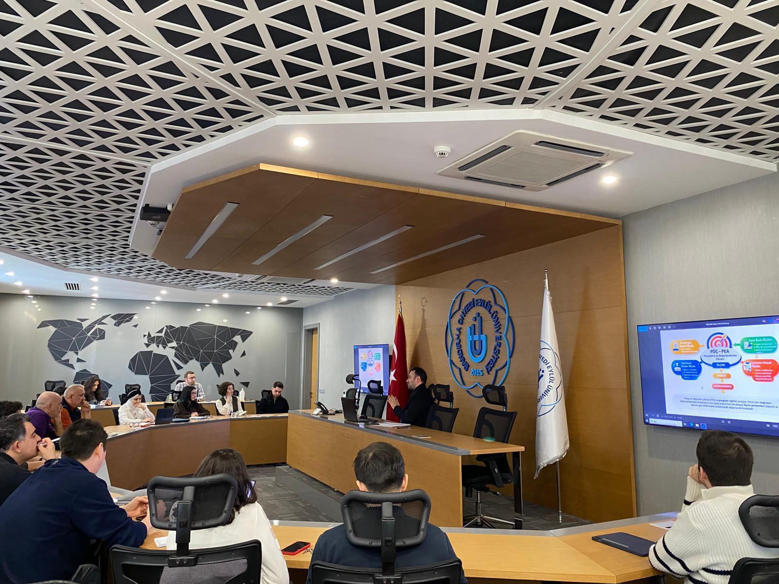 İİBF Dekan Yardımcısı Dr. Öğr. Üyesi Devran DENİZ moderatörlüğünde 11.03.2026 tarihinde gerçekleştirilen toplantıda, akademik kalite standartlarımızın temelini oluşturan program çıktıları ve PUKO döngüsü (Planla – Uygula – Kontrol Et – Önlem Al) ile ilgili kapsamlı değerlendirmelerde bulunuldu.