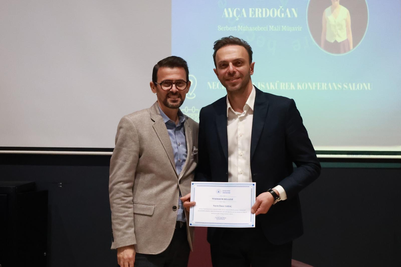 Konferansta YMM ve SMMM mesleklerinin günümüzdeki konumu, mesleğe giriş süreçleri, sahada karşılaşılan uygulamalar, kariyer planlaması ve mesleğin geleceğine ilişkin güncel değerlendirmeler kapsamlı bir şekilde ele alındı. Panelistler, meslek hayatında edindikleri tecrübeleri somut örnekler üzerinden aktararak öğrencilerin teorik bilgilerini pratik bakış açısıyla pekiştirmelerine katkı sağladı.