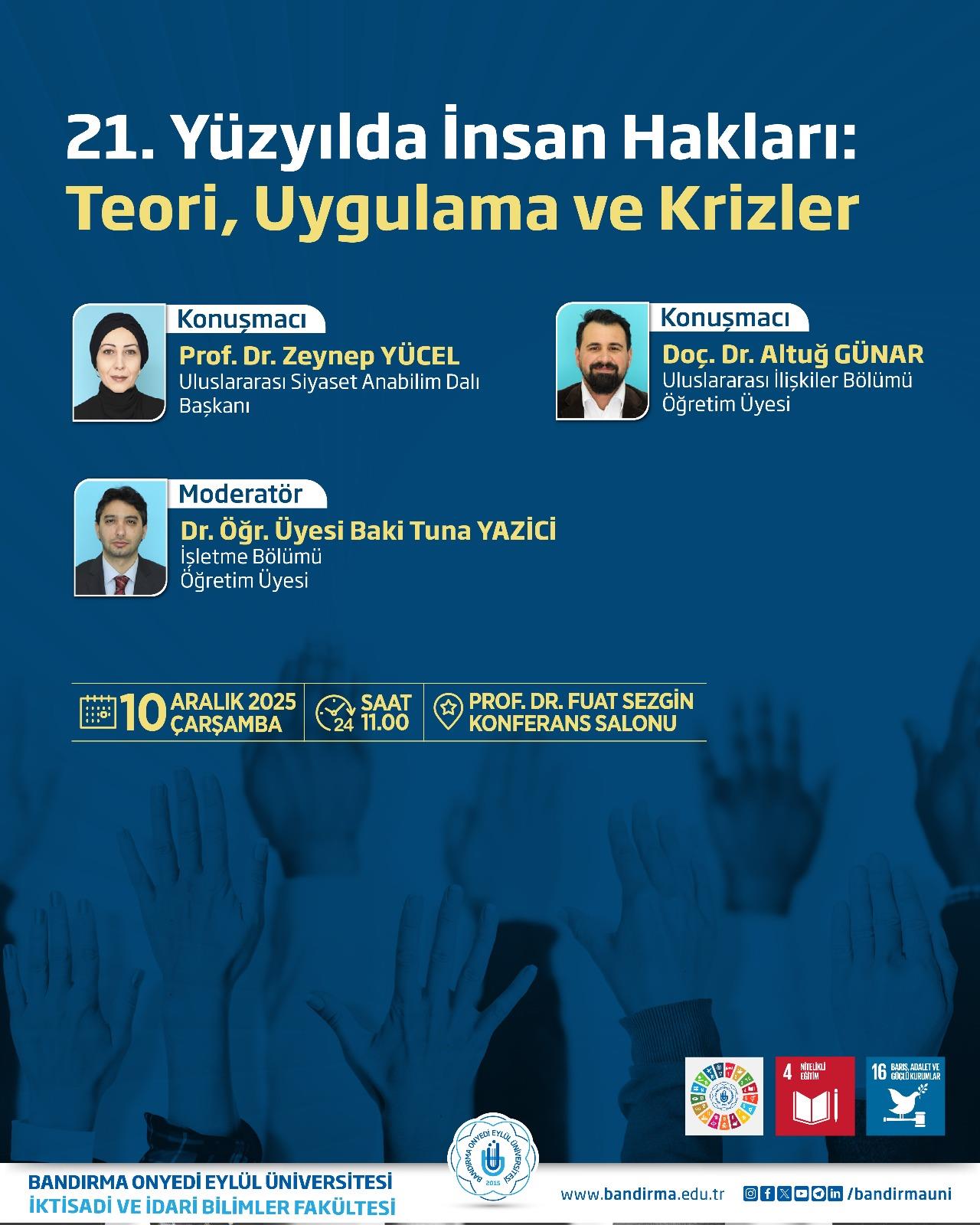 21. Yüzyılda İnsan Hakları: Teori, Uygulama ve Krizler” başlıklı konferans düzenlenecektir