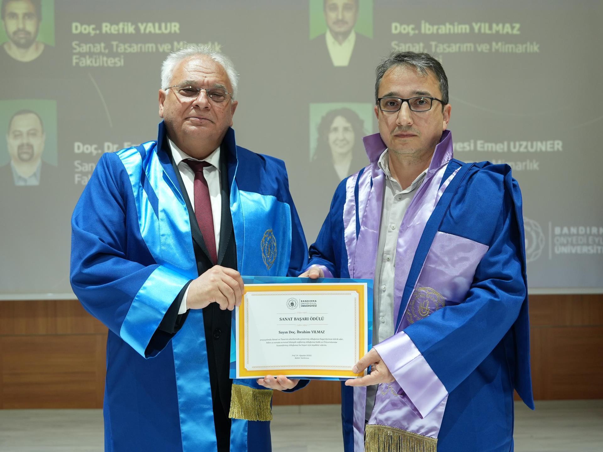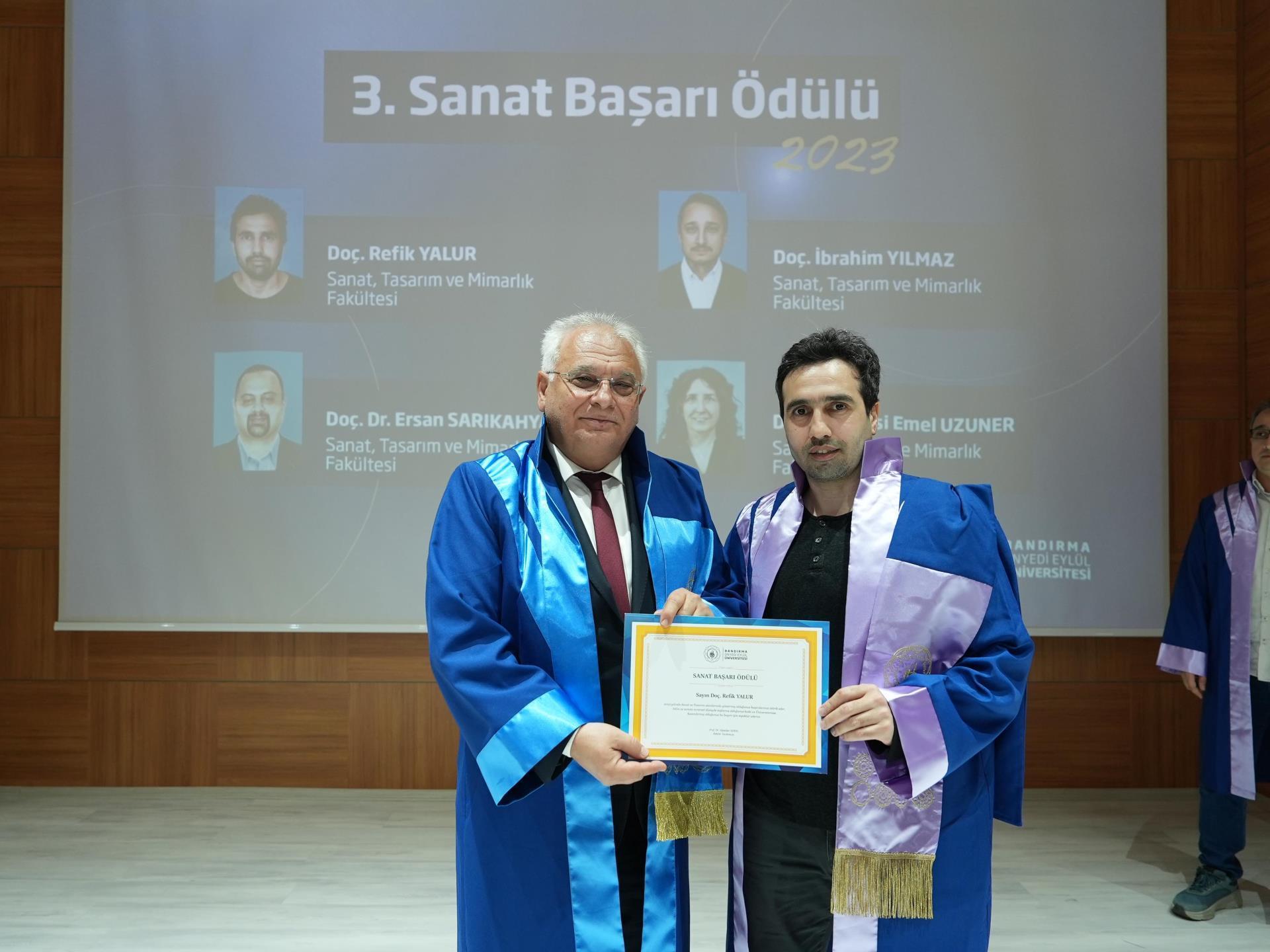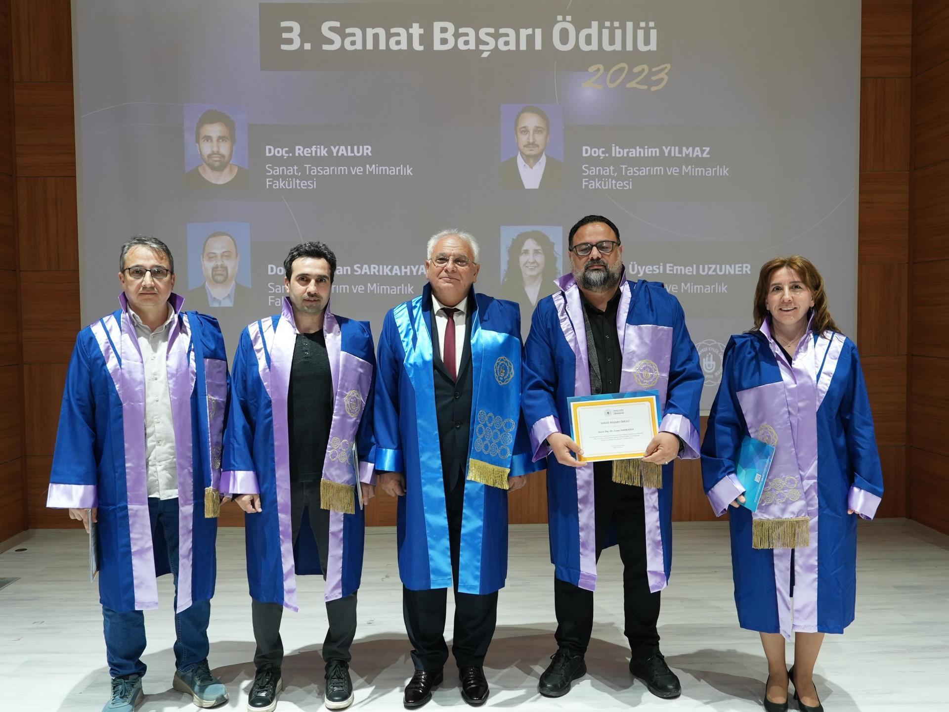 At the Academic Achievement Award Ceremony organized by our university on 22 April 2025 at 10.00, our faculty members; Assoc. Prof. Dr. Ersan SARIKAHYA, Assoc. İbrahim YILMAZ, Assoc. Refik YALUR and Dr. Lecturer Emel UZUNER were awarded the ‘ART ACHIEVEMENT’ award with the Bird Paradise Poster Biennial event organized in 2023-2024. Prof. Dr. Emel UZUNER were deemed worthy of the ‘ART SUCCESS’ award.