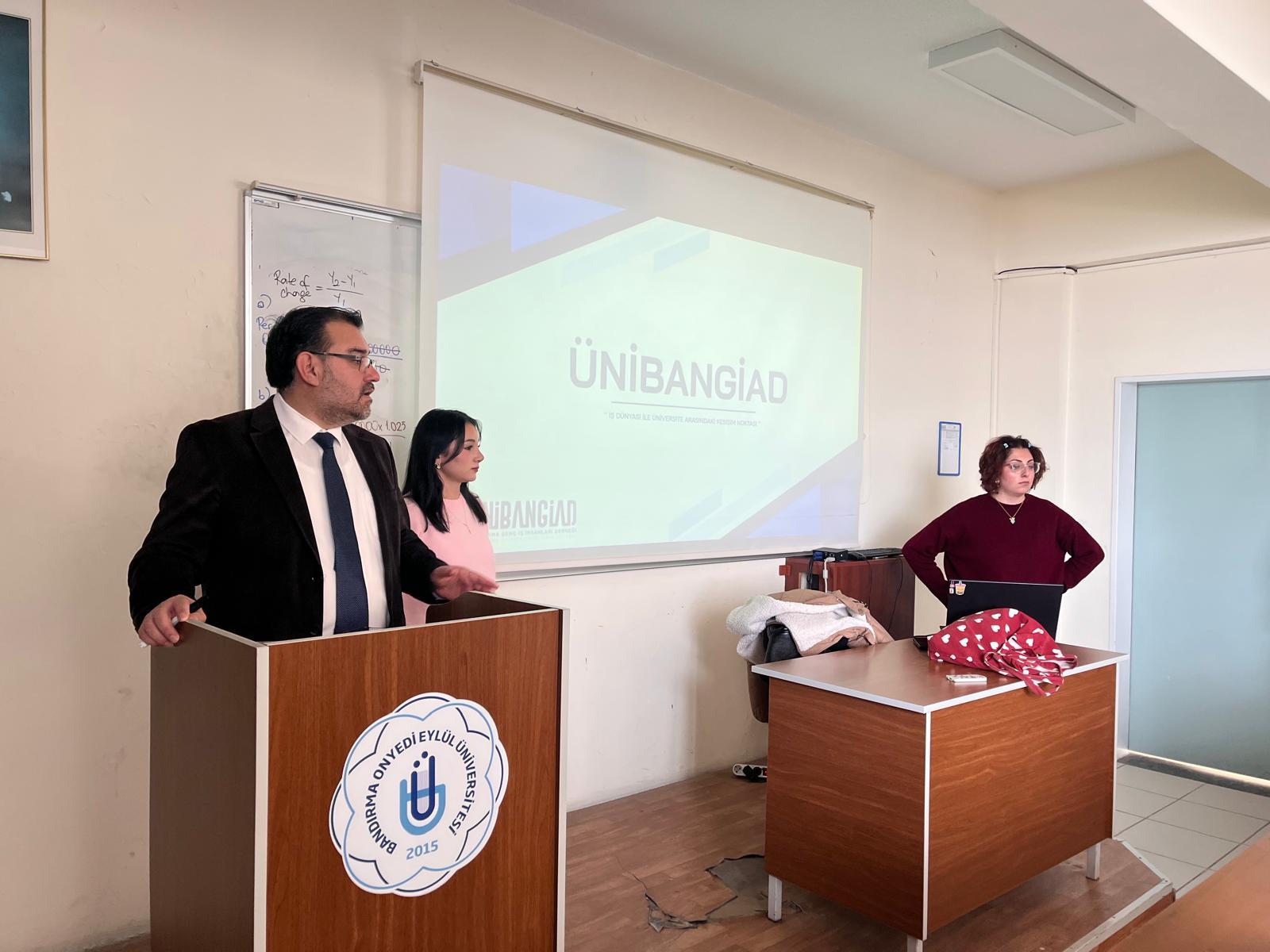 Üniversitemiz Genç İş İnsanları Derneği Üniversite Topluluğu (ÜNİBANGİAD) tarafından Uluslararası İlişkiler öğrencilerine tanıtım etkinliği yapıldı.